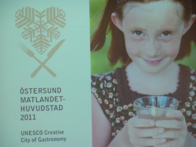 Vi fick provsmaka på mathantverk från länet, upplagda på takspån. Det var havtornssylt från Jämt-Tina i Slandrom, tunnbröd, ostar, korv, kött, och en del andra grejer. Jättegott. Det var nog havtornen och ostarna som gick hem bäst hos mig. Det har också givits ut en broschyr där alla småskaliga matproducenter i Jämtlands län finns med. Den kan man använda när man lägger upp en semesterrutt, och sedan åker man runt och har en massa matupplevelser. Schysst va? Det finns även en från mitt eget län. Den skall jag avhandla i ett annat inlägg. Jag skall nog använda mig en del av den i sommar.